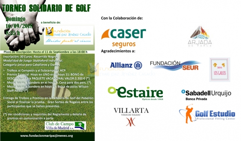 Agradecemos al Club de Campo Villa de Madrid la convocatoria a sus abonados a participar en el I TORNEO DE GOLF a favor de la Fundación Mari Paz Jiménez Casado.