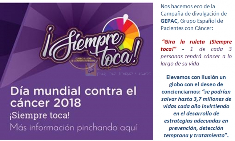 El día 4 de febrero fue instaurado en el año 2000 Día Mundial del Cáncer para la concienciación y movilizar a la sociedad para avanzar en la prevención y control de esta enfermedad.