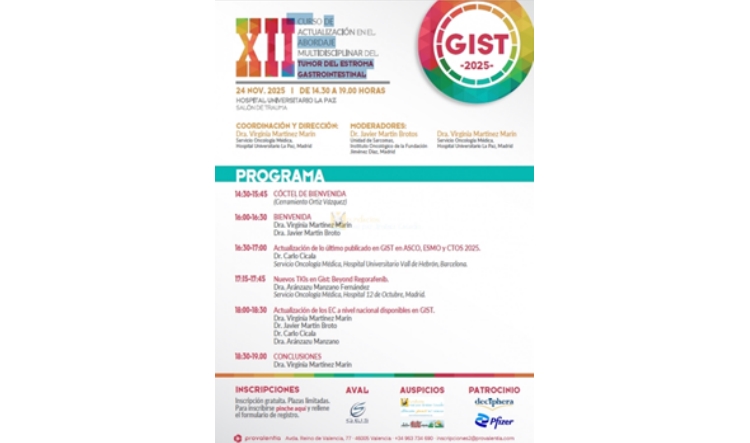20 de noviembre: Reunión Comisión Estable de Trabajo de Oncología Médica - Hospital Vall D´Hebron 24 de noviembre: XII Curso Actualización GIST
