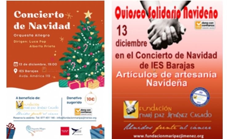 13 de diciembre: Concierto de Navidad - Orquesta Allegro - A beneficio de la Fundación. 13 de diciembre: QUIOSCO SOLIDARIO NAVIDEÑO - En IES Barajas.