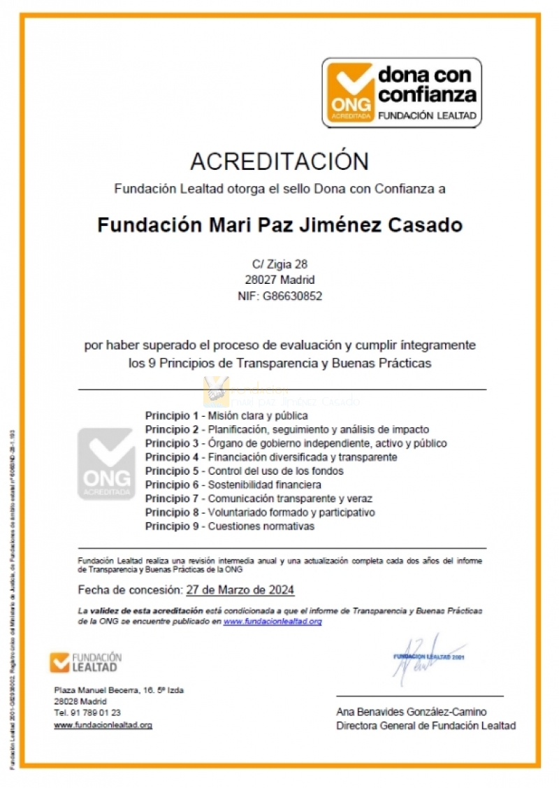 En España de las más de 30.000 Fundaciones que existen, sólo 240 tienen el "sello de Fundación Lealtad " y en el ámbito de investigación en sanidad solamente 4 Fundaciones están acreditadas. Ahora una de ellas es la FMPJC