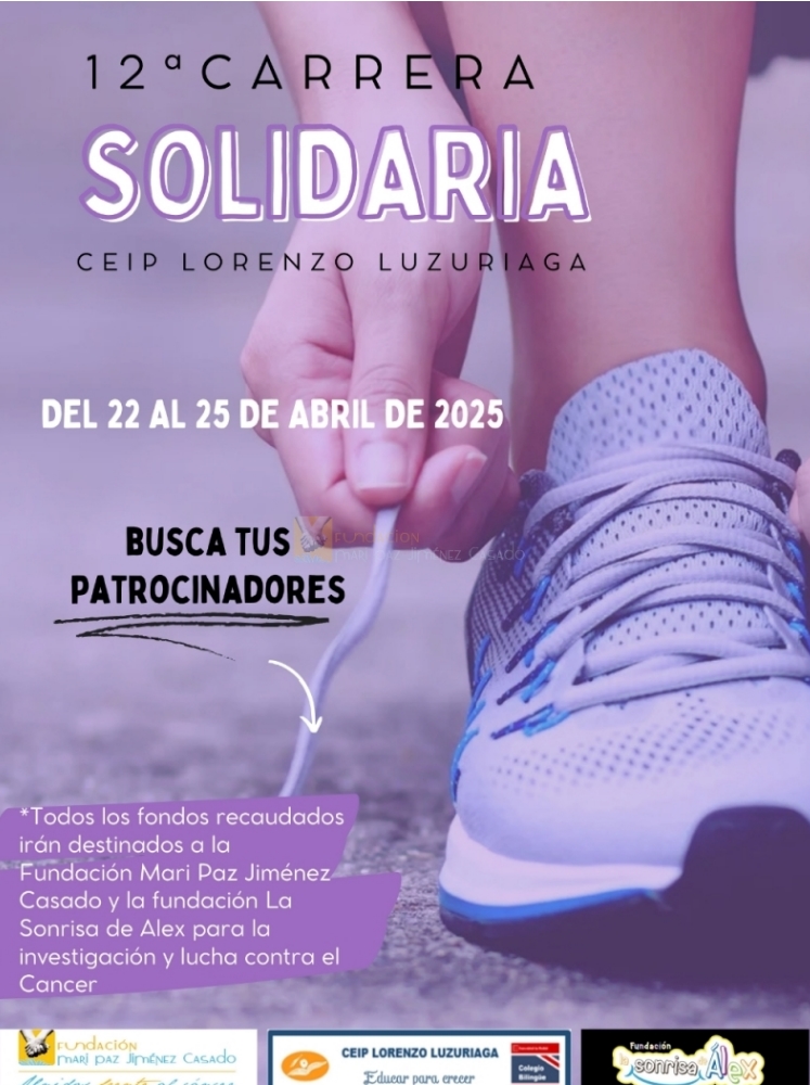 22 de abril: Carrera Solidaria del CEIP Lorenzo Luzurriaga en Beneficio de la FMPJC y LFLSA. 23 de abril: Charla en el CEIP Lorenzo Luzurriaga de la FMPJC sobre la Investigacion en sarcomas