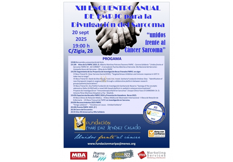 26 de febrero: Curso BSTT en MadridEl Curso de BSTT en Madrid se celebra del 25 al 28 de Febrero 2025. El día 28, la Jornada de Enfermería en Sarcomas se organiza al amparo de este curso con la colaboración de la FMPJC y de la Fundación Elena Tertre