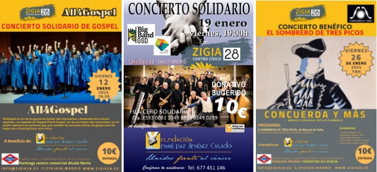 12 de enero: Concierto Solidario de "All4Gospel" 19 de enero: Concierto solidario de GSD Big Band 26 de enero: Concierto Solidario - Zigia,28