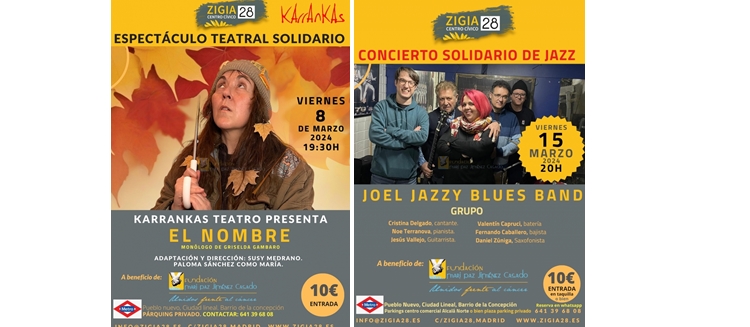 8 de marzo: Espectáculo teatral Soliario en Zigia 28. 15 de marzo: Concierto de Jazz en Zitia,28.