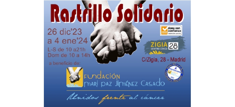 PRIMER TRIMESTRE de 2024. Ver acceso sobre cada noticia a las páginas de Actualidad, Eventos y Agenda de esta web. 26 diciembre 2023 a 4 de enero: Rastrillo Solidario de la FMPJC - en agenda