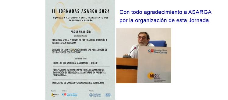 TERCER TRIMESTRE de 2024. Ver acceso sobre cada noticia a las páginas de Actualidad, Eventos y Agenda de esta web. 4 de julio: III Jornadas ASARGA 2024 "Equidad y Autonomía en el tratamiento del Sarcoma en España"