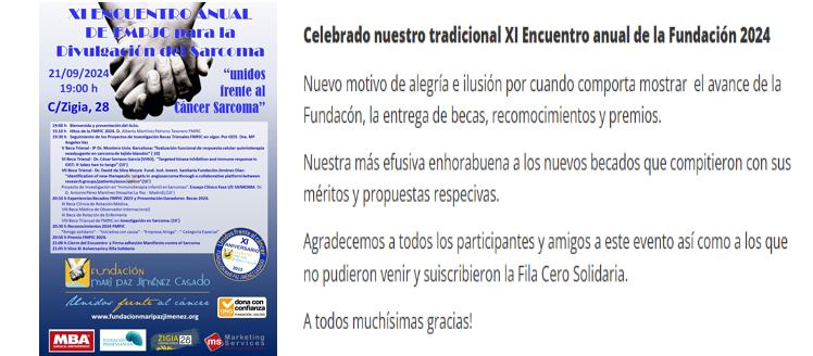 12 de septiembre: Junta de Patronos FMPJC: "Aprobación de las Becas de la FMPJC 2024 y Reconocimientos de la FMPJC 2024" 20 de septiembre - DIA NACIONAL DEL SARCOMA - en agenda