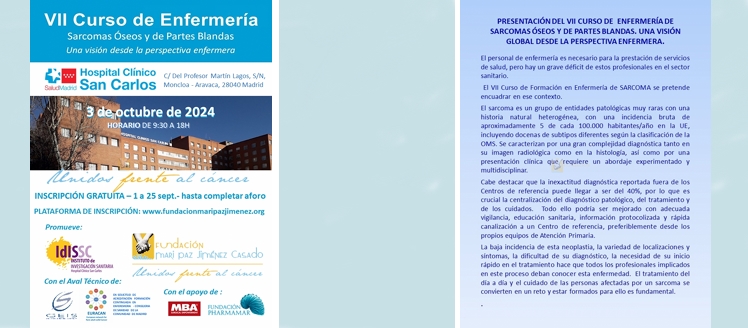 CUARTO TRIMESTRE de 2024. Ver acceso sobre cada noticia a las páginas de Actualidad, Eventos y Agenda de esta web. 2 de octubre: XVI Curso Avanzado de Sarcomas del GEIS - en agenda 12 de octubre: VII Curso de Enfermería Oncológica en Sarcomas - H. Clínico San Carlos