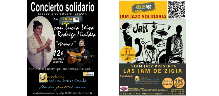 5 de octubre:Concierto Solidario Zigia28 - Lucía Leiva y Rodrigo Mialdea - agenda 11 de octubre - Concierto Solidario - JAM JAZ SOLIDARIA - agenda