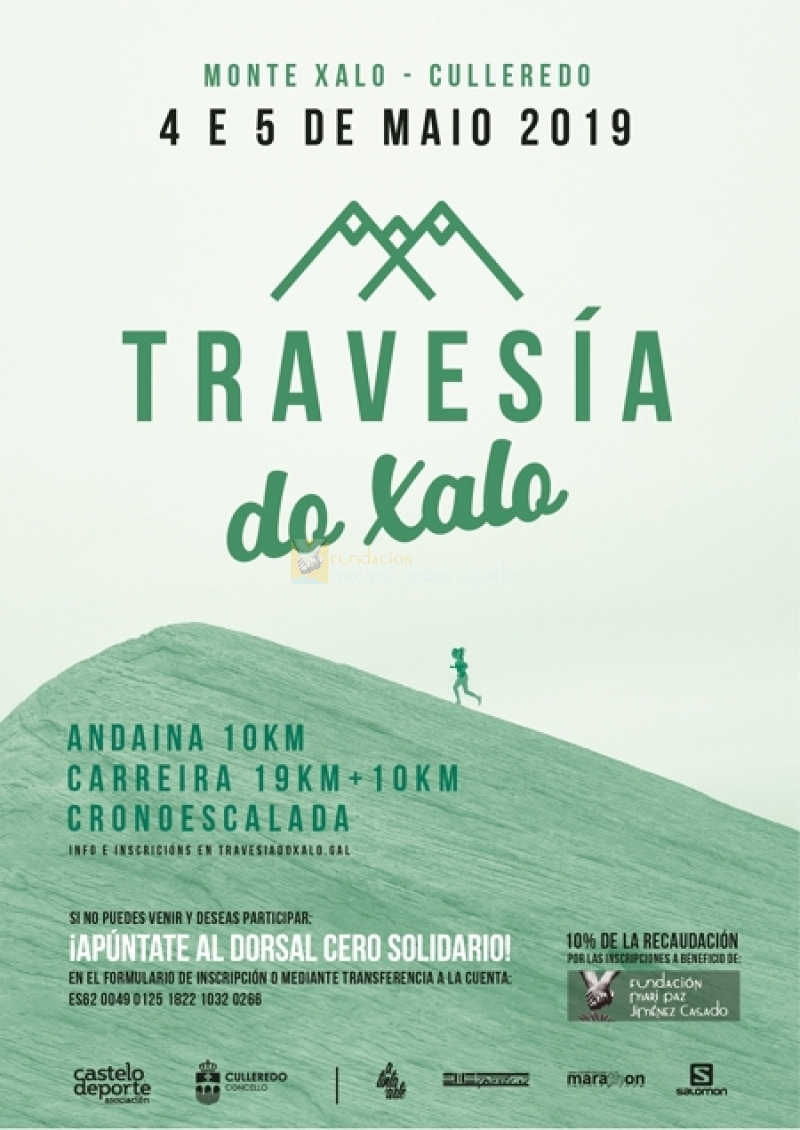 Agradecemos a los organizadores la Convocatoria de esta carera popular "Travesia do Xalo" que se realiza en Lugar Folgueira - Castelo 35, 15139 Culleredo (A Coruña), solidaria con la Fundación Mari Paz Jiménez Casado con Carreras por el monte de 19 km y de 10 km, Marcha montañera para todos, Crono escalada de 3 km y Carreras infantiles.