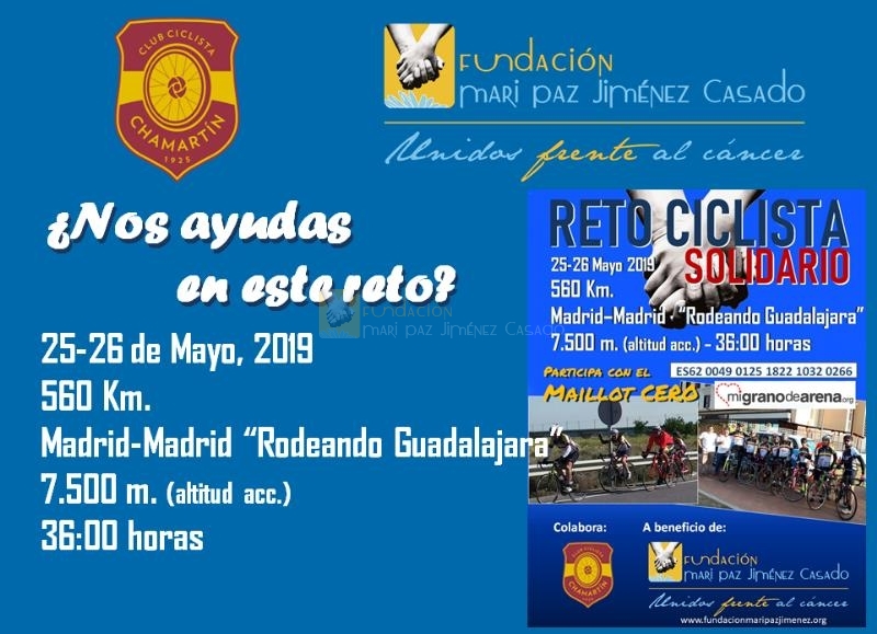 Agradecemos muy especialmente a los Sponsors y al Club Ciclista Chamartín por su colaboración en la difusión de este Reto.