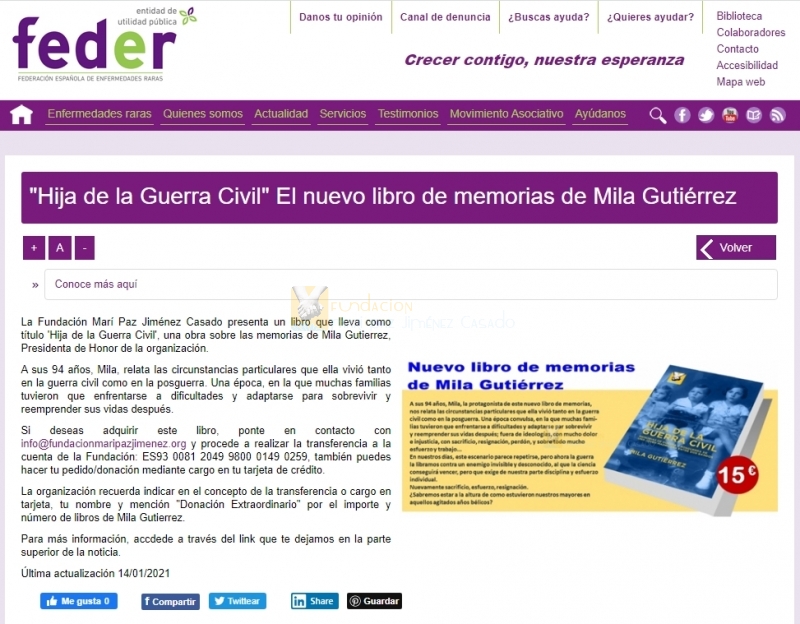 Agradecedmos a FEDER, Federación Española de Enfermedades Raras, su apoyo en la difusión del nuevo libro de Mila.